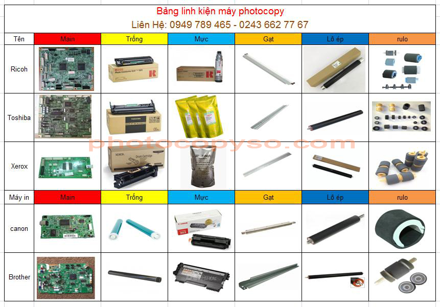 VẬT TƯ LINH KIỆN MÁY PHOTOCOPY